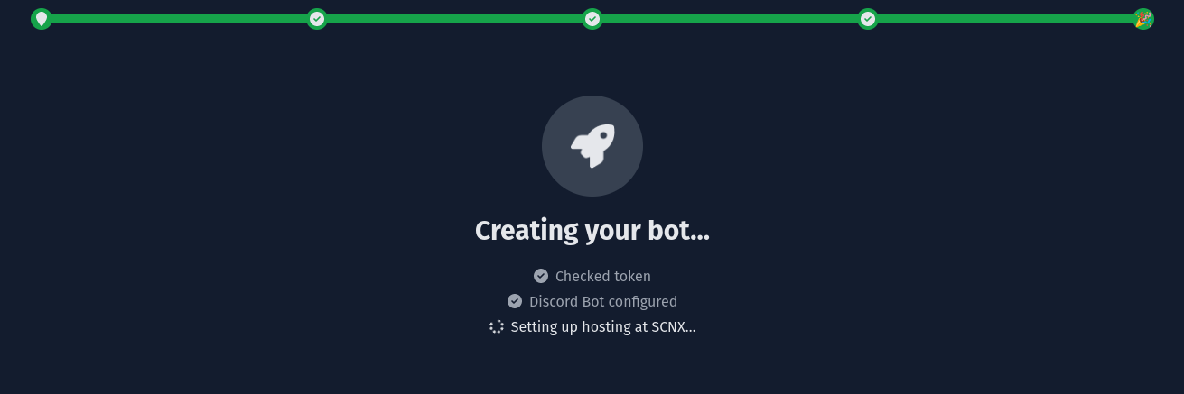 Next, you'll be asked to enter the token you obtained in step 1. Do this and click on "Check my token & create bot". SCNX will verify your token and continue to the next step if it's correct.