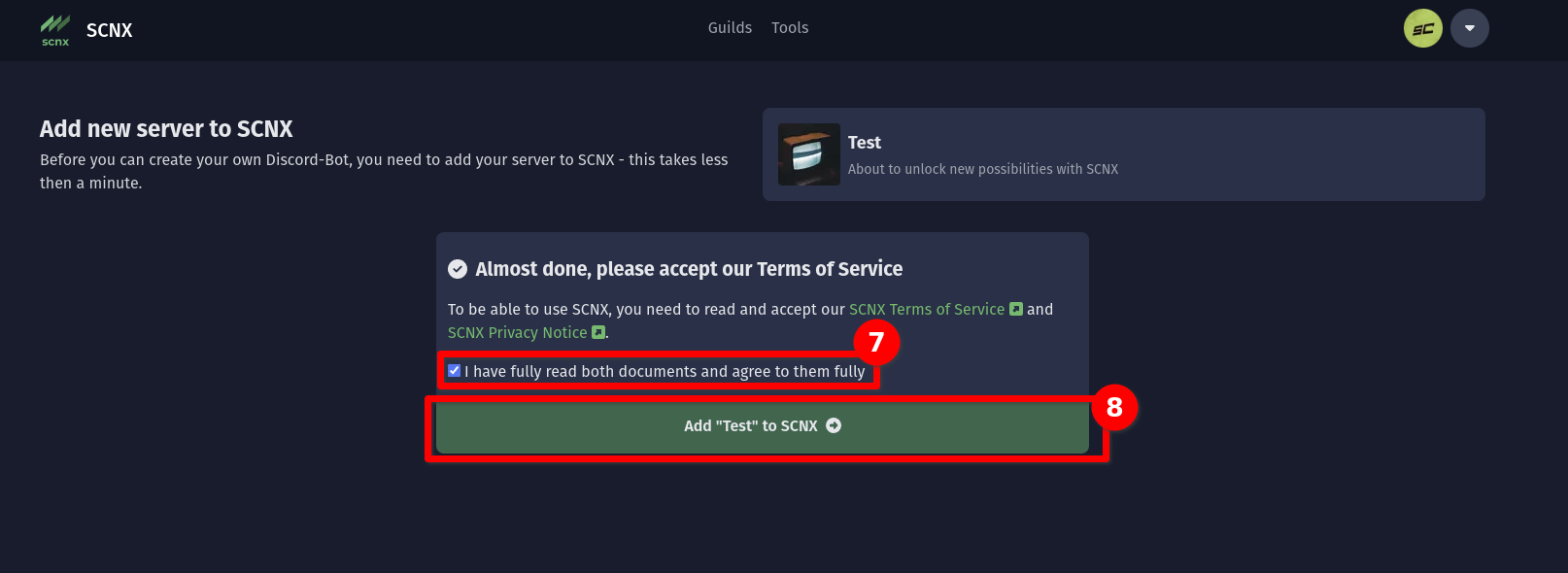Your server has been successfully added to SCNX 🎉 You can now start by creating your own bot or modmail-bot or explore all features on your own - our documentation & staff on our Discord is always here to help.